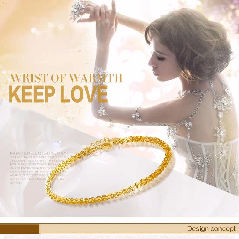 18k Pure Gold Women Bracelet Yellow Rose Girl Genuine Real Solid 750 Gift Female Bangle Upscale Hot Sale 2017 New Party Trendy