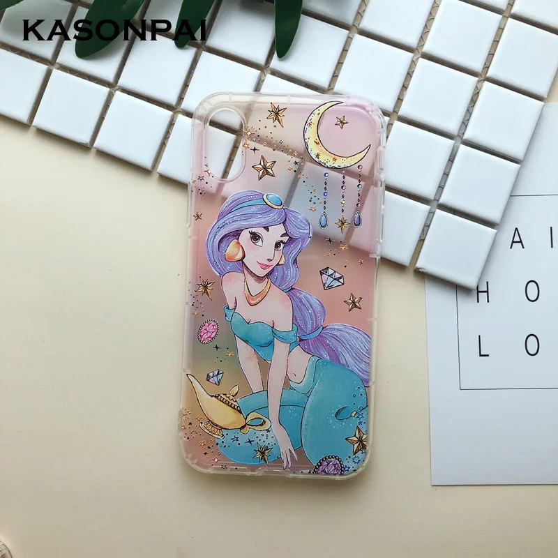KASONPAI 3D Cartoon Alice Princess Mermaid Phone Case For iPhone 8 7 6S 6 Plus Cute Soft TPU Back Cover Clear Case For iphone X Xs Max XR