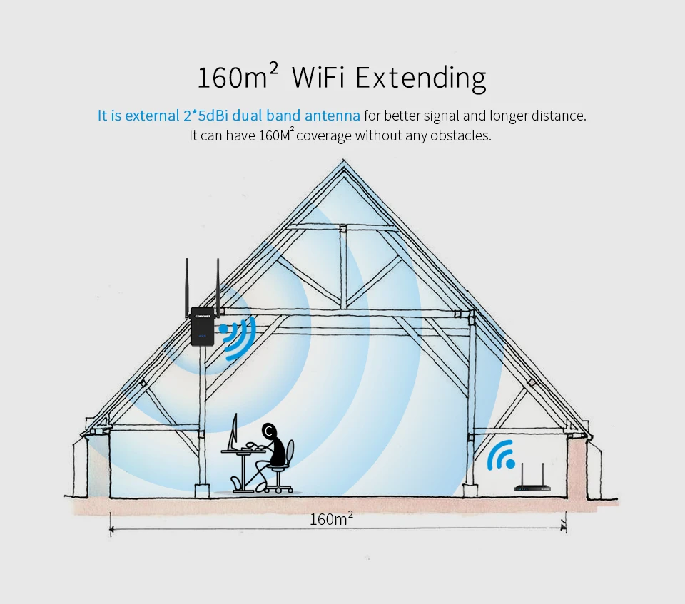 802.11b/g/n/ac Wireless Wifi Repeater 150 -750 Mbps Mini Repetidor Wifi Signal Amplifier 2.4G+5.8G Wi fi Extender 2*5dBi Antenna