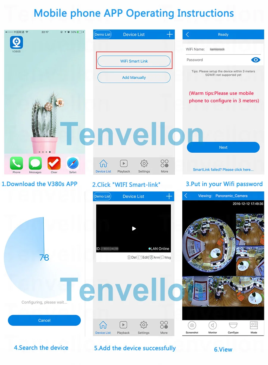 This Wifi IP camera is mainly designed for personal surveillance, the chipset and sensor are specifically optimized for mobile phone use. It can be used on many occasions, Baby Monitor, Elderly Care, Small Store Management and Room Surveillance. The camera system is simple and practical. Just need to setup camera, then you can use your phone to remote view anywhere you want, to monitoring at the office, other city or other countries. If you looking for a wifi IP camera for the easy remote view, this is the most suitable product so far. 360 – degree panoramic view, see the whole picture in the home, without rotating the camera, monitor without dead Angle. If you have any questions about this problem, at the end of the page have FAQ for your reference.