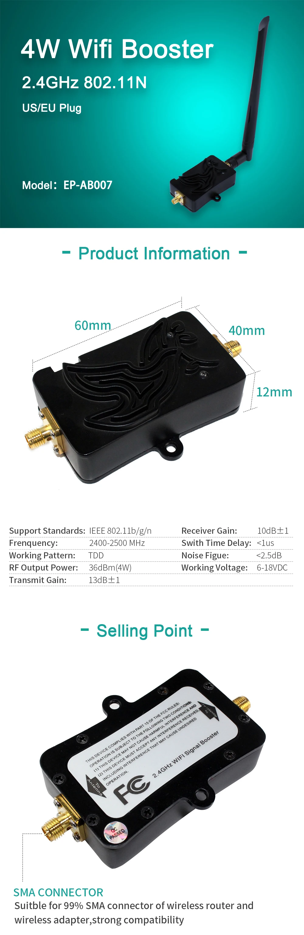 - Please comfirm that you device output power range is between 3dBm and 20dBm,only that the wifi signal booster could work well