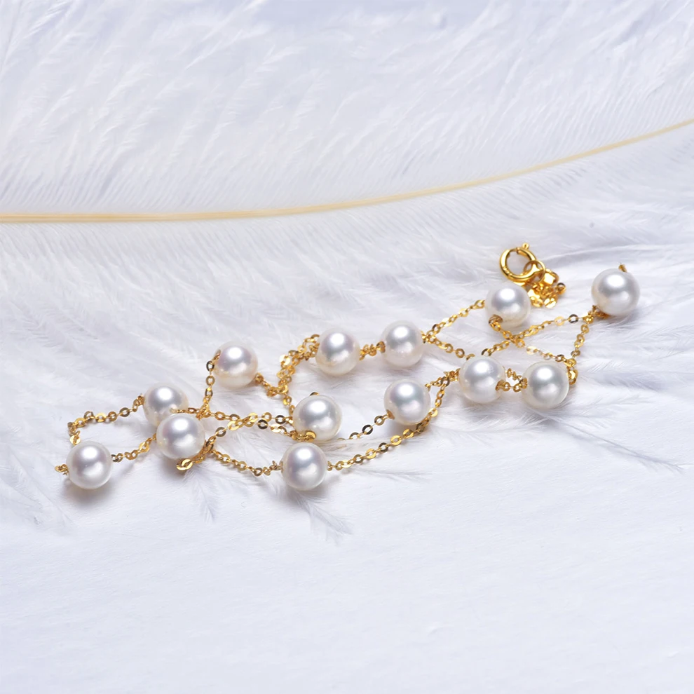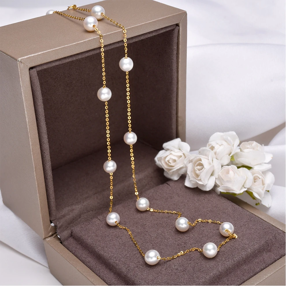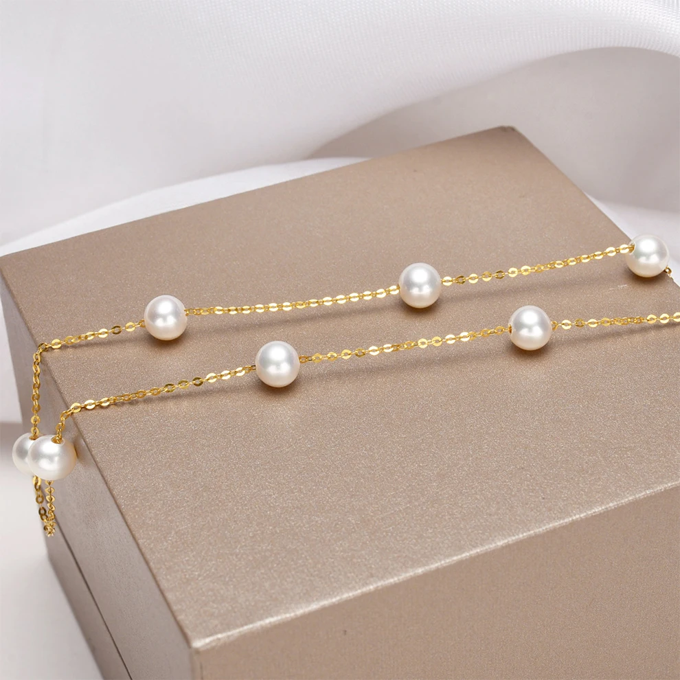 [YS] 18K Gold 5-5.5mm White Pearl Necklace China Freshwater Pearl Necklace Jewelry
